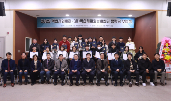 ÀÍ»ê½ÃÀÇ»çȸ´Â Áö³ 18ÀÏ Àú³á º¸°Ç¼Ò¿¡¼ ÀåÇÐÁõ¼ ¼ö¿©½ÄÀ» °¡Á³´Ù. À̳¯ Çà»ç¿¡´Â °¿µ¼® ºÎ½ÃÀå°ú Á¤¼ºÈ¯ ÀÍ»ê½Ã±³À°Áö¿øÃ»Àå, ±è¹Î¼± ¿ø±¤´ëÇб³ Àǰú´ëÇÐÀåÀ» ºñ·ÔÇØ ÀÇ»çȸ ȸ¿ø, Çкθð µî 70¿© ¸íÀÌ Âü¼®Çß´Ù.