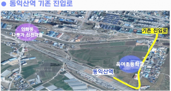 ÀÎȵ¿ ³ª·í°¡ ½Åõ¸¶À» Áֹΰú Àå°æÈ£ ÀÇ¿ø¿¡ µû¸£¸é Àü¶ó¼± º¹¼±È¿¡ µû¶ó µ¿Àͻ꿪ÀÌ 2011³â 5¿ù ÀÌÀüÇÏ°Ô µÆ°í, µ¿»êµ¿ ¿Á¾ßÃʵîÇб³¾Õ µµ·Î¸¦ ÅëÇØ µ¿Àͻ꿪 ¹°·ùâ°í¿¡¼ ȹ°À» ½Ç¾î ³ª¸£´Â ´ëÇüÆ®·¹ÀÏ·¯ Â÷·®µéÀÌ ¼³Ä¡µÈ ÀÓ½Ãö±³¸¦ ÅëÇØ 2012³â 1¿ùºÎÅÍ ÀÎȵ¿ ³ª·í°¡ ½Åõ¸¶À»·Î ÅëÇàÇÏ°Ô µÆ´Ù.