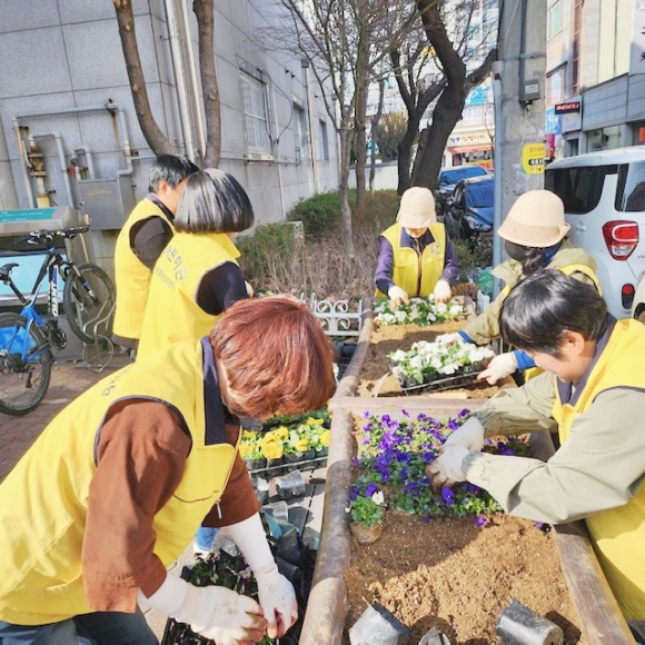 ƯÈ÷, ¿µµî2µ¿ ÇàÁ¤º¹Áö¼¾ÅÍ ÁÖº¯¿¡ º½²ÉÀ» ½É¾î Áö¿ª Áֹε鿡°Ô Çâ±ßÇÏ°í ¾Æ¸§´Ù¿î º½ÀÇ Á¤Ã븦 ¼±»çÇß´Ù.
