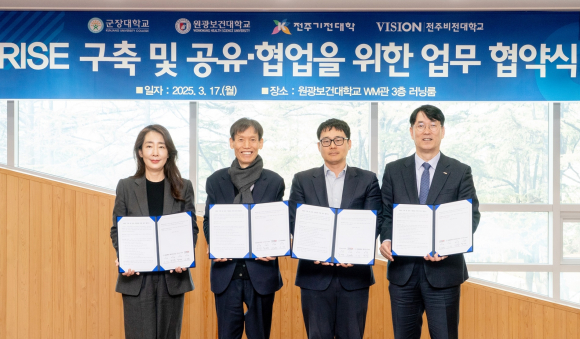 |  | | | ¡è¡è ÀüºÏ±Ç¿ª RISE ±¸Ãà ¹× °øÀ¯¡¤Çù¾÷À» À§ÇÑ »óÈ£Çù·Â ¾÷¹«Çù¾à Àå¸é. | | ¨Ï ÀÍ»ê½Å¹® | | ¿ø±¤º¸°Ç´ëÇб³¸¦ ºñ·Ô ÀüÁÖºñÀü´ëÇб³¡¤±ºÀå´ëÇб³¡¤ÀüÁÖ±âÀü´ëÇб³ µî ÀüºÏÁö¿ª ¼ÒÀç 4°³ ´ëÇÐÀÌ ÀüºÏ±Ç¿ª RISE ±¸Ãà ¹× °øÀ¯¡¤Çù¾÷À» À§ÇÑ »óÈ£Çù·Â Çù¾àÀ» ÀÌ´Þ 17ÀÏ ¿ø±¤º¸°Ç´ë WM°ü 3Ãþ ·¯´×·ë¿¡¼ ü°áÇß´Ù.