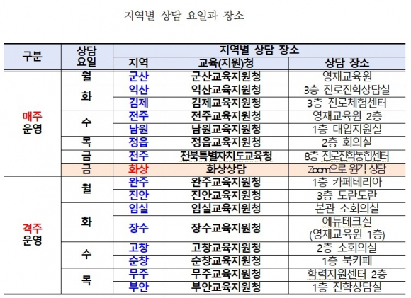 ÀüºÏ±³À°Ã»Àº ÀÌ´Þ 31ÀϺÎÅÍ 12¿ù±îÁö º»Ã»°ú 14°³ ±³À°Áö¿øÃ»¿¡¼ ¡®Áö¿ªº° ´ë¸é‧È»ó ÁøÇлó´ã¡¯À» ¿î¿µÇÑ´Ù°í 17ÀÏ ¹àÇû´Ù.