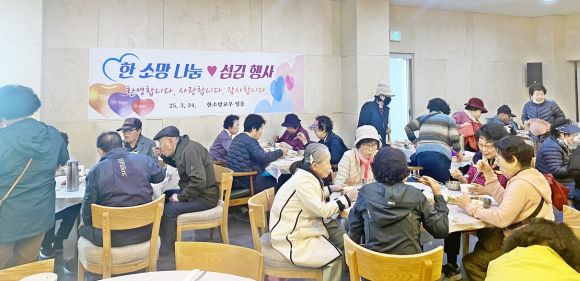 ÀÍ»ê ÇѼҸÁ±³È¸(´ãÀÓ¸ñ»ç ±è´ë±â)°¡ 3¿ù 24ÀÏ ¾î¾çµ¿ °ÅÁÖ ¾î¸£½Å 100¿© ¸íÀ» ÃÊÃ»ÇØ µû¶æÇÑ Á¡½ÉÀ» Á¦°øÇϸç Áö¿ª»çȸ¿¡ ¿Â±â¸¦ ÀüÇß´Ù.