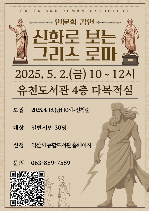 À̹ø °¿¬Àº °í´ë ±×¸®½º ½ÅÈ ¼Ó ÁÖ¿ä Àι°°ú À̾߱âµéÀ» ÅëÇØ ±×¸®½º¡¤·Î¸¶ ¹®¸íÀÇ Æ¯Â¡À» »ìÆìº¸°í, °í´ë ½ÅȰ¡ ¿À´Ã³¯ ¿ì¸®ÀÇ ¹®È¿Í ÀÏ»ó¿¡ ¾î¶² ¿µÇâÀ» ¹ÌÄ¡°í ÀÖ´ÂÁö Á¶¸íÇÑ´Ù.