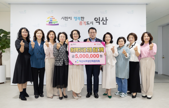 ÀÍ»ê½Ã¿©¼º´ÜüÇùÀÇȸ(ȸÀå °¼ºÀÚ)´Â 14ÀÏ ÀÍ»ê½ÃûÀ» ã¾Æ ¿©¼ºº¹Áö½Ã¼³ Áö¿ø ¼º±Ý 500¸¸¿øÀ» ±âŹÇß´Ù.