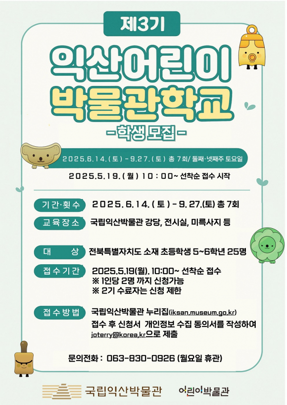 ÀÍ»ê ¾î¸°À̹ڹ°°ü Çб³´Â 6¿ù 14ÀϺÎÅÍ 9¿ù 27ÀϱîÁö ¸Å¿ù µÑ°¡¤³Ý° ÁÖ Åä¿äÀÏ¿¡ ¿î¿µµÈ´Ù.