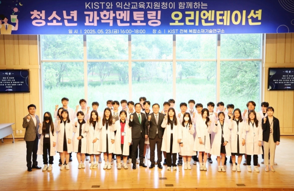 5¿ù 23ÀÏ °úÇÐ ºÐ¾ß¿¡ Àç´É°ú ¿Á¤À» Áö´Ñ ÀÍ»ê °ü³» °íµîÇлý 32¸íÀ» Æ÷ÇÔÇØ Áöµµ±³»ç¡¤Á¤¼ºÈ¯ ±³À°À塤 ÃÖ¿ø±¹ KIST ÀüºÏºÐ¿øÀåÀÌ Âü¼®ÇÑ °¡¿îµ¥ KIST ÀüºÏºÐ¿ø¿¡¼ ¿À¸®¿£Å×ÀÌ¼Ç ¹× ¿¬±¸½Ç ޹æÀ» ÁøÇàÇß´Ù.
