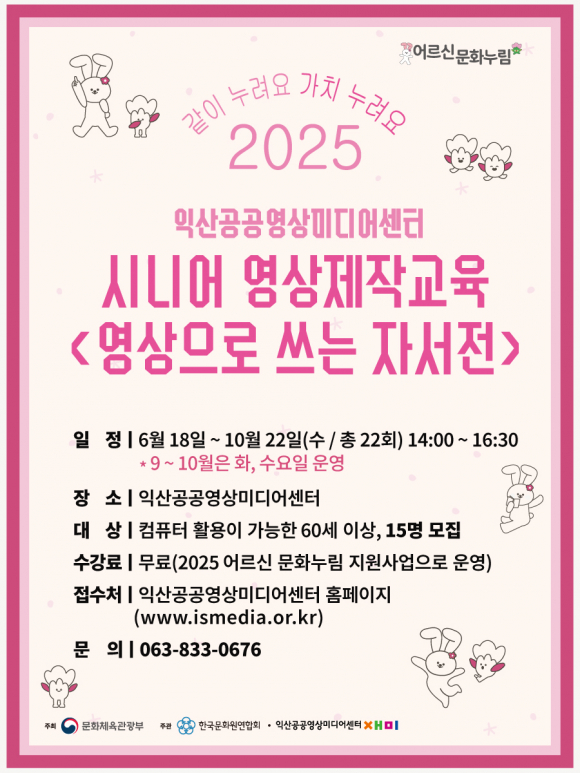 |  | | | ¨Ï ÀÍ»ê½Å¹® | | ÀÍ»ê½Ã´Â ÀÍ»ê°ø°ø¿µ»ó¹Ìµð¾î¼¾ÅͰ¡ ¹®ÈüÀ°°ü±¤ºÎ ÁÖÃÖ ¡®2025 ¾î¸£½Å ¹®È´©¸² »ç¾÷¡¯¿¡ ¼±Á¤µÅ, ¿µ»ó Á¦ÀÛ ±³À° ¡®¿µ»óÀ¸·Î ¾²´Â ÀÚ¼Àü¡¯À» ¹«·á·Î ¿î¿µÇÑ´Ù°í 26ÀÏ ¹àÇû´Ù.