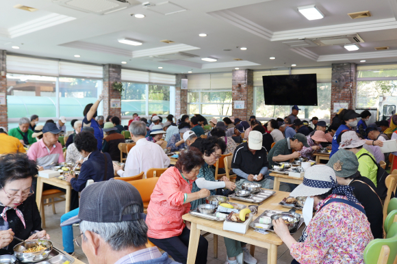 ¸£½ÅµéÀÇ °Ç°°ú ¿µ¾çÀ» °í·ÁÇÑ ½Ä´Ü ±¸¼º¿¡ °¢º°È÷ ½Å°æÀ» ½èÀ¸¸ç, º¹Áö°ü Á÷¿øµé°ú ÀÚ¿øºÀ»çÀÚµéÀÌ Á¤¼º²¯ ÁغñÇÑ À½½ÄÀº µû¶æÇÑ È¯¿µÀÇ Àǹ̸¦ ´õÇß´Ù.