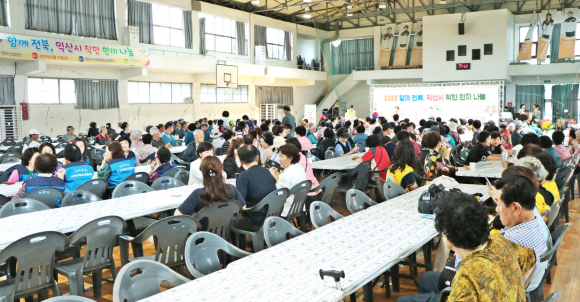 ¶Ç ÀÍ»ê½ÃÄ¡¸Å¾È½É¼¾ÅÍ¿¡¼ À¯Àι° ¾È³», ¼ö°¡ºÀ»ç´Ü°ú ÀÍ»êÈ£½ºÇǽº¼¾ÅÍ¿Í ÇÔ²² 500¿©¸íÀÇ ¾î¸£½Åµé¿¡°Ô Â¥Àå¸éÀ» ÁغñÇØ¼ ½Ä»ç¿Í À½·á¸¦ ¹«·á Á¦°øÇß´Ù.