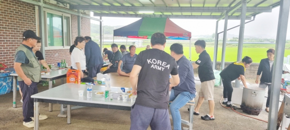 ÀÌ¿¡ ¸¶À» ÁֹεéÀº ¸¶À»ÀÜÄ¡¸¦ ¿°í ÁغñÇØ ¿Â À½½Ä°ú Á¤À» ³ª´©¸ç, °æ·Î´ç »õ ´ÜÀåÀ» ÇÔ²² ÃàÇÏÇß´Ù.