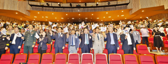 'Á¦80Áֳ⠱¤º¹Àý °æÃàÇà»ç'´Â ÀÌ´Þ 15ÀÏ ¼Ø¸®¹®È¿¹¼úȸ°ü Áß°ø¿¬Àå¿¡¼ Á¤ÇåÀ² ½ÃÀå°ú ÇѺ´µµ ±¹È¸ÀÇ¿ø, µµ¡¤½ÃÀÇ¿ø, ±¤º¹È¸ ¹× º¸ÈÆ´Üü ȸ¿ø, Çлý µî 500¿© ¸íÀÌ Âü¼®ÇÑ °¡¿îµ¥ ¿·È´Ù.