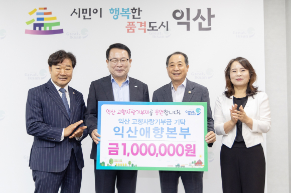 ÀÍ»ê½Ã¾ÖÇ⺻ºÎ(º»ºÎÀå ±è¿ë±Õ)´Â ±³Çâ»ç¶û±âºÎÁ¦ Ȱ¼ºÈ¿Í Áö¿ª»çȸ ¹ßÀü¿¡ ±â¿©Çϱâ À§ÇØ 9¿ù 24ÀÏ ÀÍ»ê½Ã¿¡ °íÇâ»ç¶û±âºÎ±Ý 100¸¸ ¿øÀ» ±âŹÇß´Ù.