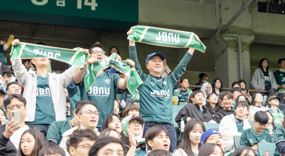 À̳¯ ¿ÀÈÄ 2½Ã ¼ö¿øFC¿ÍÀÇ ¡®2025 ÇϳªÀºÇà K¸®±×1 33¶ó¿îµå¡¯ °æ±â°¡ ÀüºÏ´ëÇб³ ÆÄÆ®³Êµ¥ÀÌ·Î ÁöÁ¤µÇ¸é¼ ¾ç¿ÀºÀ ÃÑÀåÀ» ºñ·ÔÇÑ ±³Á÷¿ø°ú Çлý¡¤¿Ü±¹ÀÎ À¯Çлý µî 2,000¿© ¸íÀÇ ÀüºÏ´ë ±¸¼º¿øµéÀÌ ´ë°Å °æ±âÀåÀ» ã¾Æ ÀÀ¿øÀüÀ» ÆîÃÆ´Ù.
