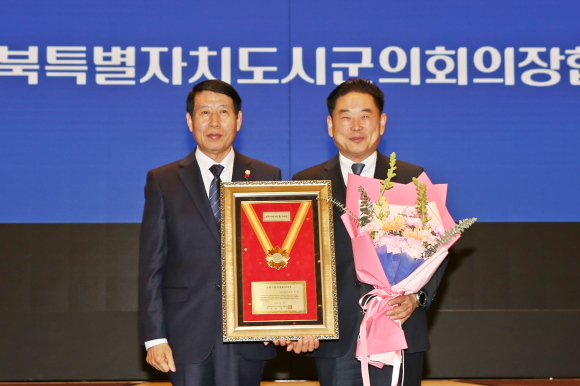 ÀÌ »óÀº ÇöÀå Áß½ÉÀÇ È°¹ßÇÑ ÀÇÁ¤È°µ¿À¸·Î Áö¿ª»çȸ ¹× Áö¹æÀÚÄ¡ ¹ßÀü¿¡ ±â¿©ÇÑ °ø·Î°¡ ÀÖ°í ÅõöÇÑ »ç¸í°¨°ú ºÀ»ç Á¤½ÅÀ¸·Î ½Ã¹ÎÀÇ Çູ°ú »îÀÇ Áú Çâ»ó¿¡ ÃÖ¼±À» ´ÙÇÑ ÀÇ¿ø¿¡°Ô ¼ö¿©µÇ´Â »óÀ¸·Î, ±è°æÁø ÀÇÀåÀº Á¦9´ë ÈĹݱâ ÀÇÀåÀ¸·Î¼ ½Ã¹Î Á᫐ ÀÇȸ¸¦ À̲ø¾î¿Â Á¡À» ³ôÀÌ Æò°¡¹Þ¾Æ ¼ö»óÇÏ°Ô µÆ´Ù.