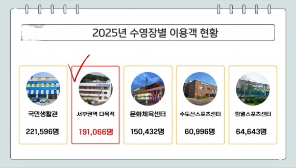 ±è¹Ì¼± ÀÇ¿ø¿¡ µû¸£¸é ¸ðÇöµ¿¿¡ À§Ä¡ÇÑ ¼ºÎ±Ç¿ª ´Ù¸ñÀû üÀ°°ü ¼ö¿µÀåÀº 2025³â ±âÁØ ¿¬°£ À̿밴ÀÌ 14¸¸ 2õ ¸í¿¡ ´ÞÇÏ´Â ÇÙ½É Ã¼À°½Ã¼³ÀÌ´Ù.