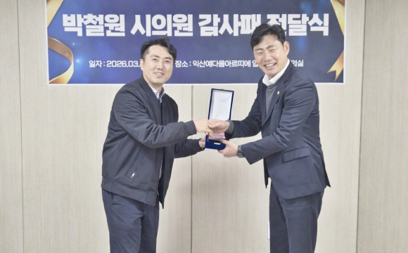 ÀÍ»ê½ÃÀÇȸ ¹Úö¿ø ÀÇ¿ø(¸ðÇö¡¤¼ÛÇе¿)ÀÌ Áö³ 20ÀÏ ¼ÛÇе¿ ¿µ¹«¿¹´ÙÀ½ ¾Æ¸£¶ì¿¡ 3Â÷ ¾ÆÆÄÆ® Áֹεé·ÎºÎÅÍ Áö¿ª Çö¾È ÇØ°á¿¡ ¾ÕÀå¼± °ø·Î¸¦ ÀÎÁ¤¹Þ¾Æ °¨»çÆÐ¸¦ Àü´Þ¹Þ¾Ò´Ù.