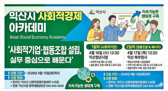 ÀÍ»ê½Ã´Â ¿À´Â 16ÀϺÎÅÍ ÀÌÆ²°£ »çȸÀû±â¾÷°ú Çùµ¿Á¶ÇÕ ¼³¸³À» Èñ¸ÁÇÏ´Â ½Ã¹ÎµéÀ» ´ë»óÀ¸·Î ¡®»çȸÀû°æÁ¦ ¾ÆÄ«µ¥¹Ì¡¯¸¦ °³ÃÖÇÑ´Ù°í 8ÀÏ ¹àÇû´Ù.