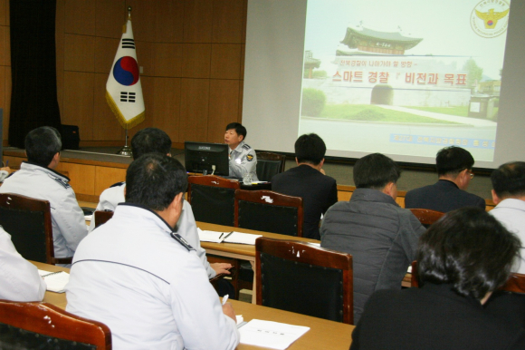 À̳¯ ȸÀÇ¿¡¼´Â Á¦ 27´ë È«¼º»ï ÀüºÏÁö¹æ°æÂûûÀå ÃëÀӽĿ¡¼ ¹àÈù, ±¹¹Î¿¡°Ô Ã¥ÀÓÀ» ´ÙÇÏ´Â Èñ¸ÁÀÇ »õ ÀÍ»ê°æÂû·Î½á °æÂû È¥ ¹× »ç¸í°¨À» °®Ãß°í(Soul, Missoin), ±¹¹ÎÀÇ ¿ä±¸¿¡ ÀûÀÀÇϸç(Adapt), ÇöÀå¿¡ °Çϰí(Reset), Á¤º¸Åë½Å±â¼úÀ» È¿°úÀûÀ¸·Î Ȱ¿ëÇÏ¿©(Technic), ±¹¹ÎÀÌ ¹Ï°í ÀÇÁöÇÒ¼ö ÀÖ´Â ¡¸SMART°æÂû¡¹ÀÌ µÉ°ÍÀ» ´ÙÁüÇß´Ù.