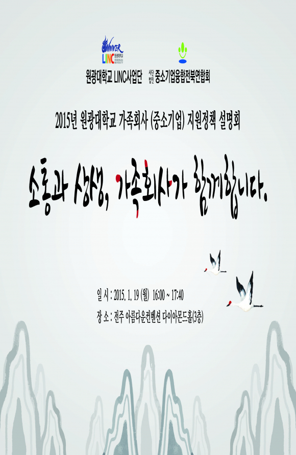 2015³â °¡Á·È¸»ç Áö¿øÁ¤Ã¥¼³¸íȸ´Â ¿ø±¤´ëÇб³ ¸µÅ©»ç¾÷´ÜÀÇ °¡Á·È¸»ç Áö¿ø¼º°ú¿Í Áö¿øÃ¥¿¡ ´ëÇÑ ÀǰßÀ» ¼ö·ÅÇϰí À̸¦ ÀüºÏµµ³» ÁöÀÚü¿Í Á¤ºÎ»êÇÏ ±â¾÷Áö¿ø±â°ü µîÀÇ À¯°ü±â°ü°ú ±â¾÷´ã´çÀÚµéÀÌ Çѵ¥¸ð¿© »êÇÐÇù·Â¿¡ ´ëÇÑ ÈÇÕÀÇ ÀåÀ» À§ÇØ ¸¶·ÃµÆ´Ù.